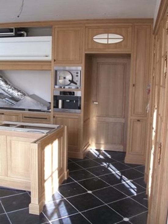 This cabinetry and paneling is also made of oak but with a totally different finish than the oak at the first project I showed you.